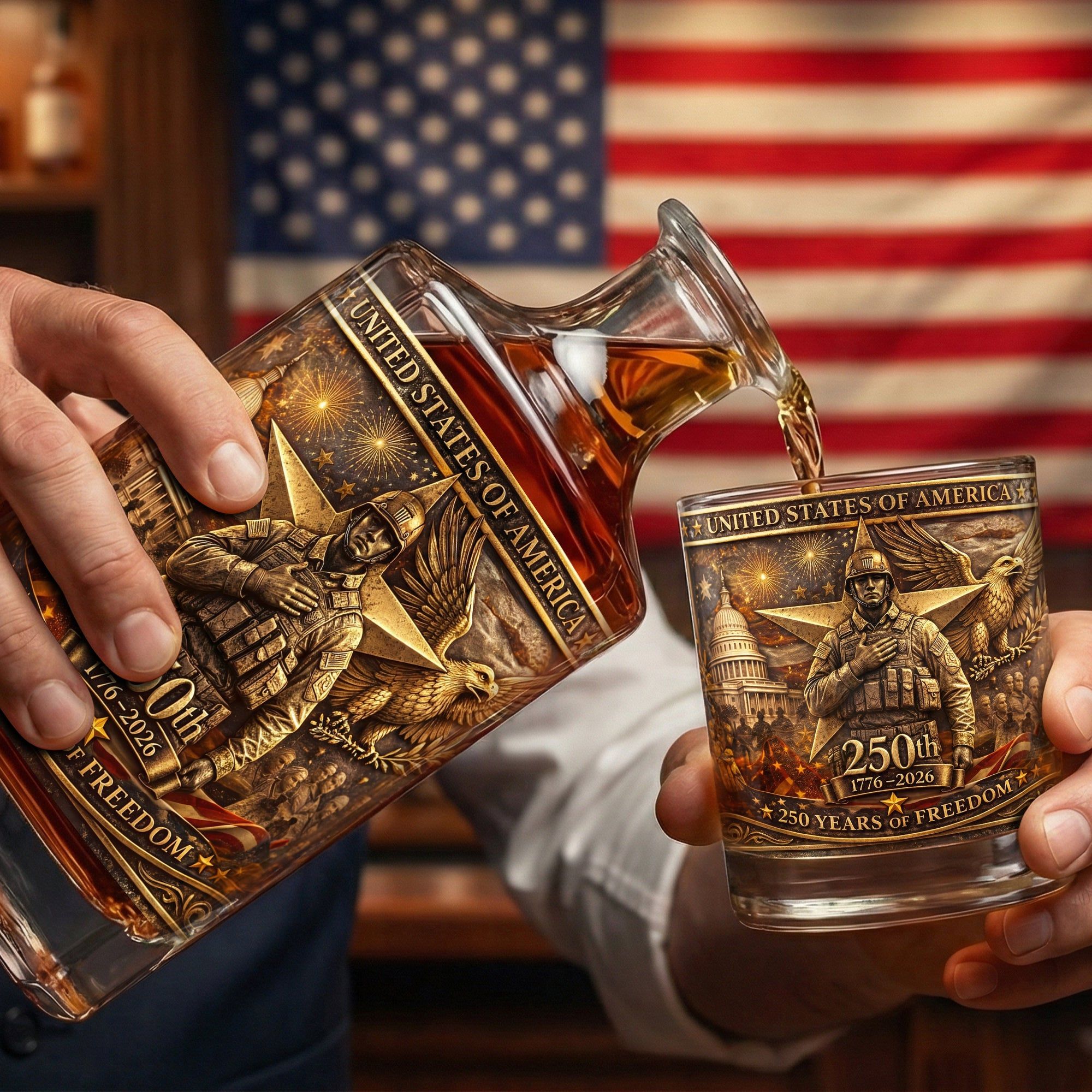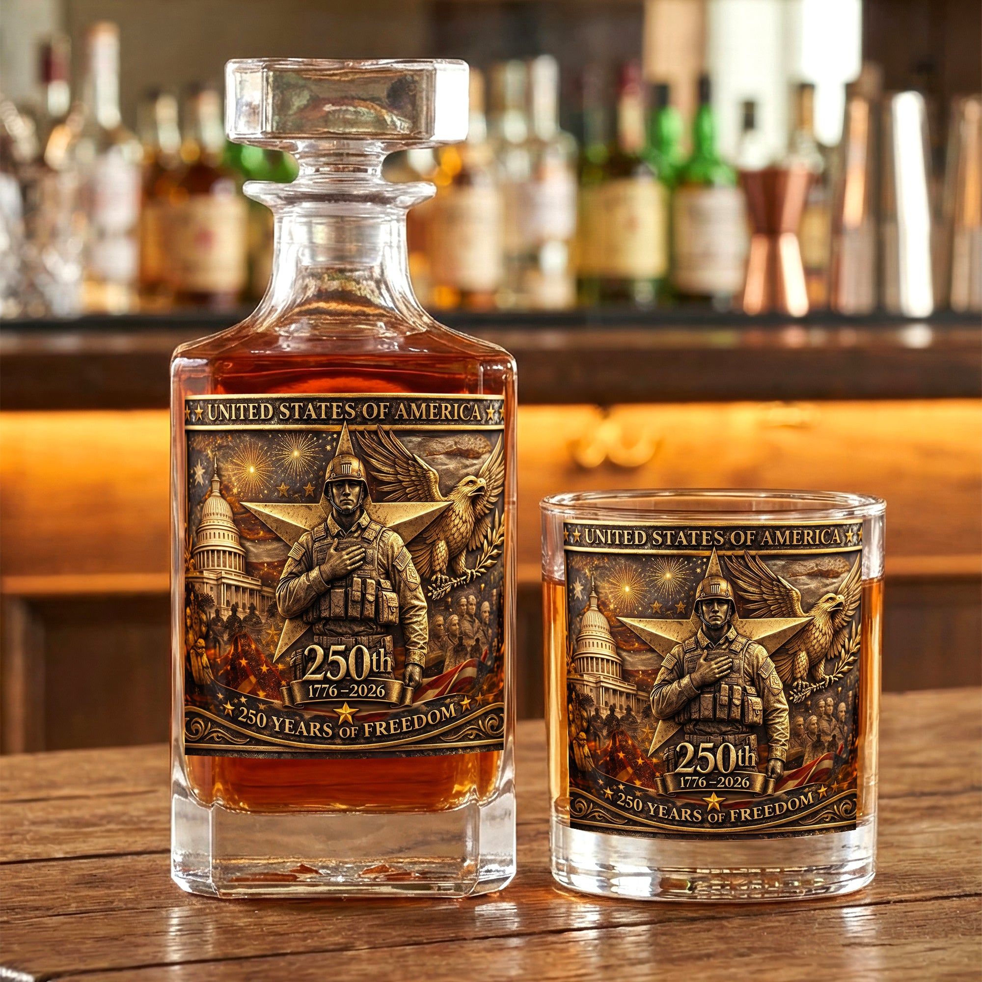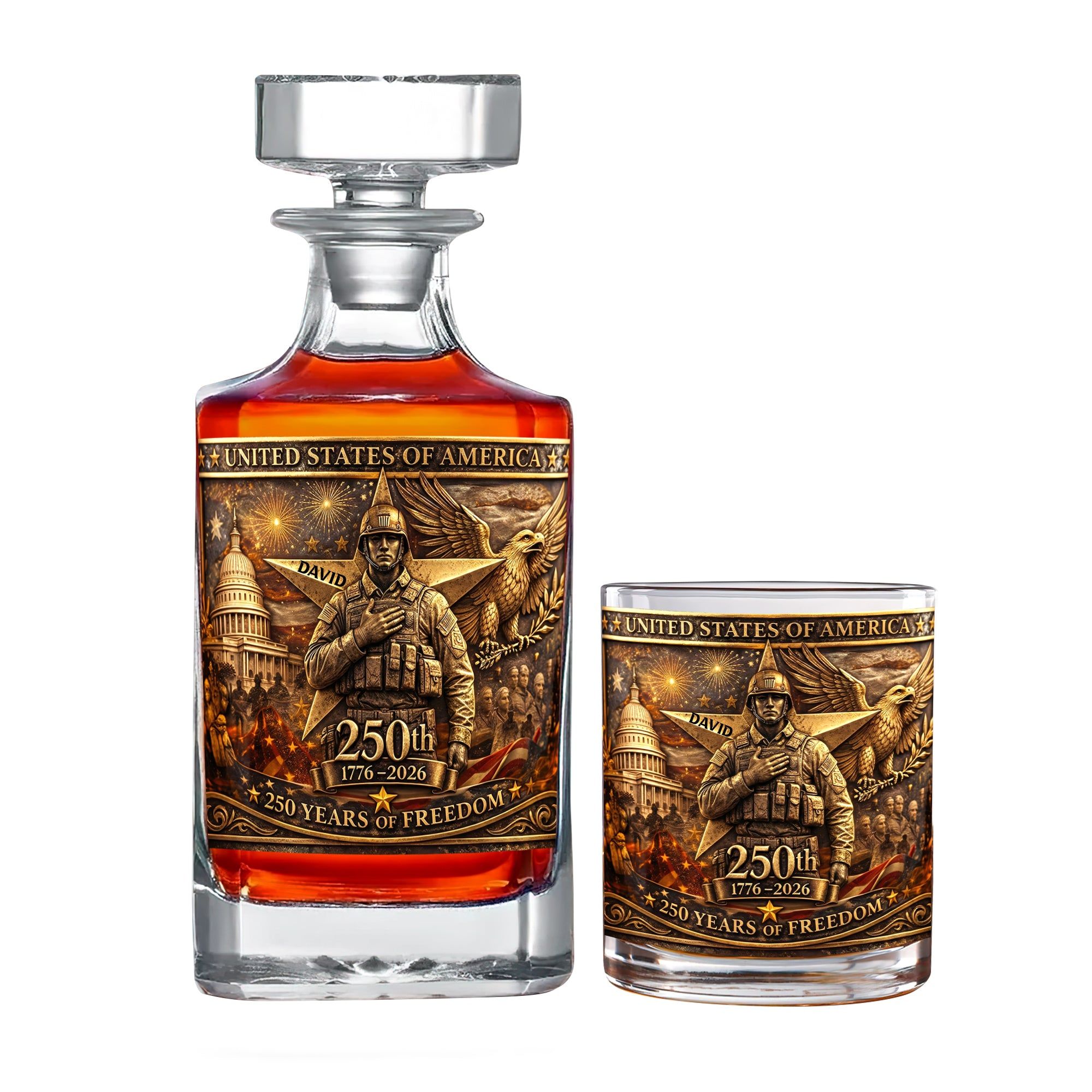 Anniversary Veteran Decanter Set - Personalized Gift For Military Decanter Set