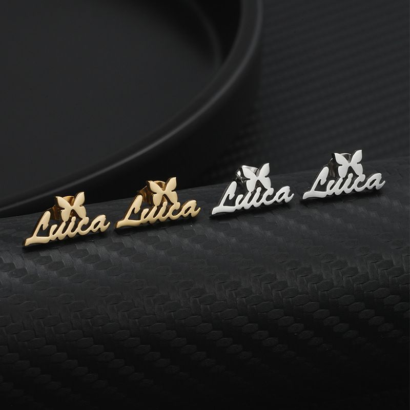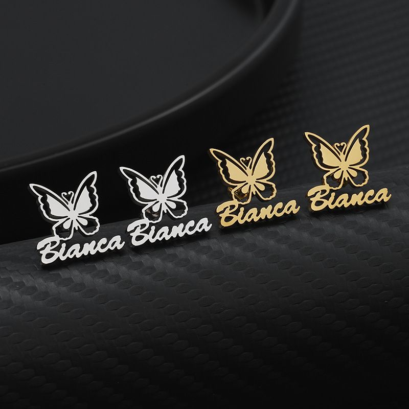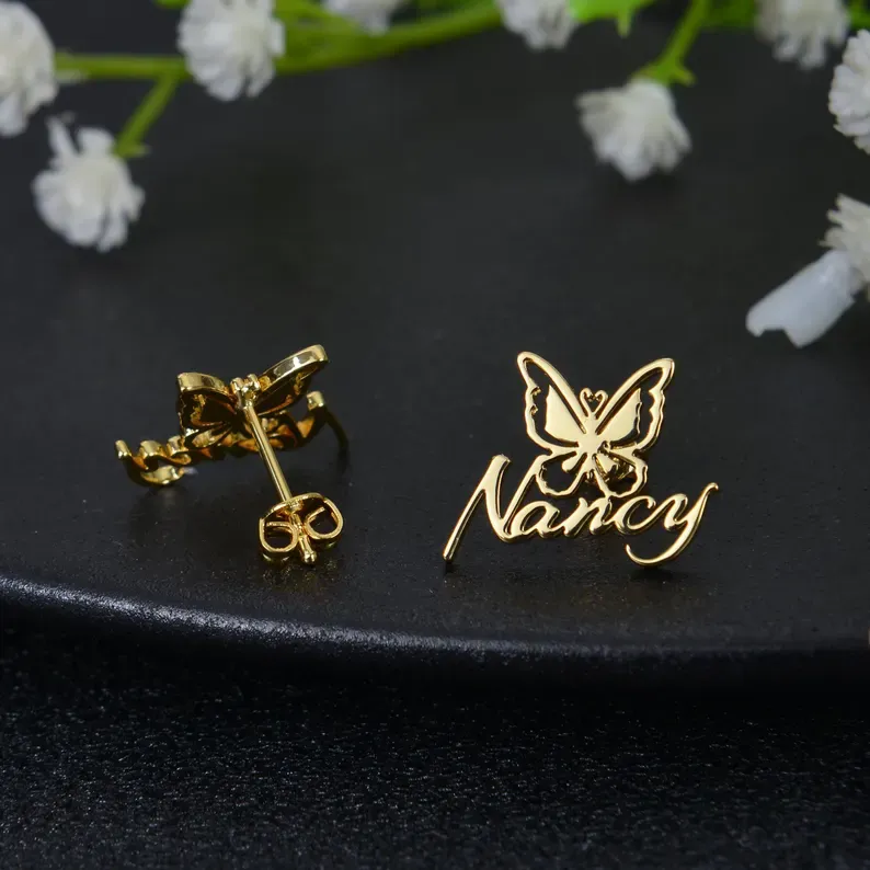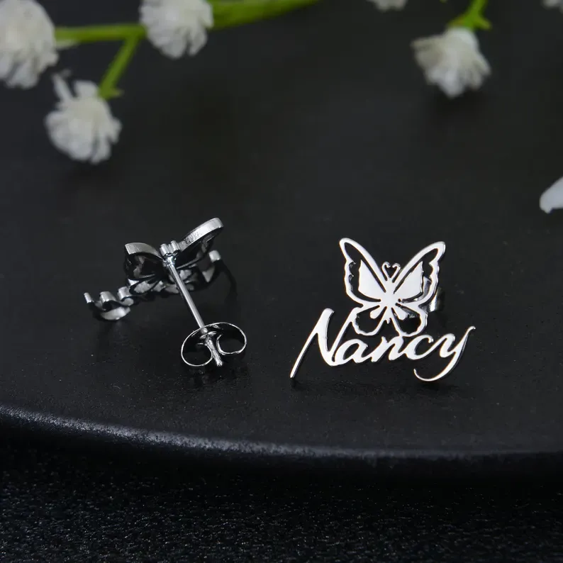 Butterfly Name Earrings: Personalized Studs with Heart Detail