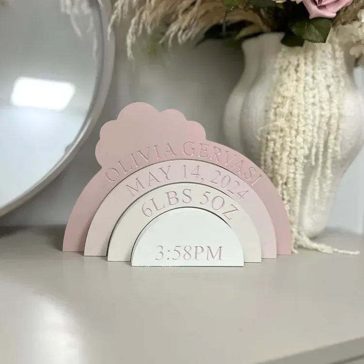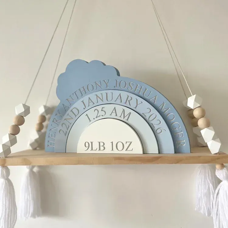 This personalized Cloud Stacking Toy is a unique keepsake designed to celebrate the birth of your baby. Customizable with your baby’s name, birthdate, birth time, and weight, it serves as a memorable and meaningful piece to commemorate the special day. Crafted from high-quality wood, this toy is a beautiful and timeless addition to your baby's nursery.