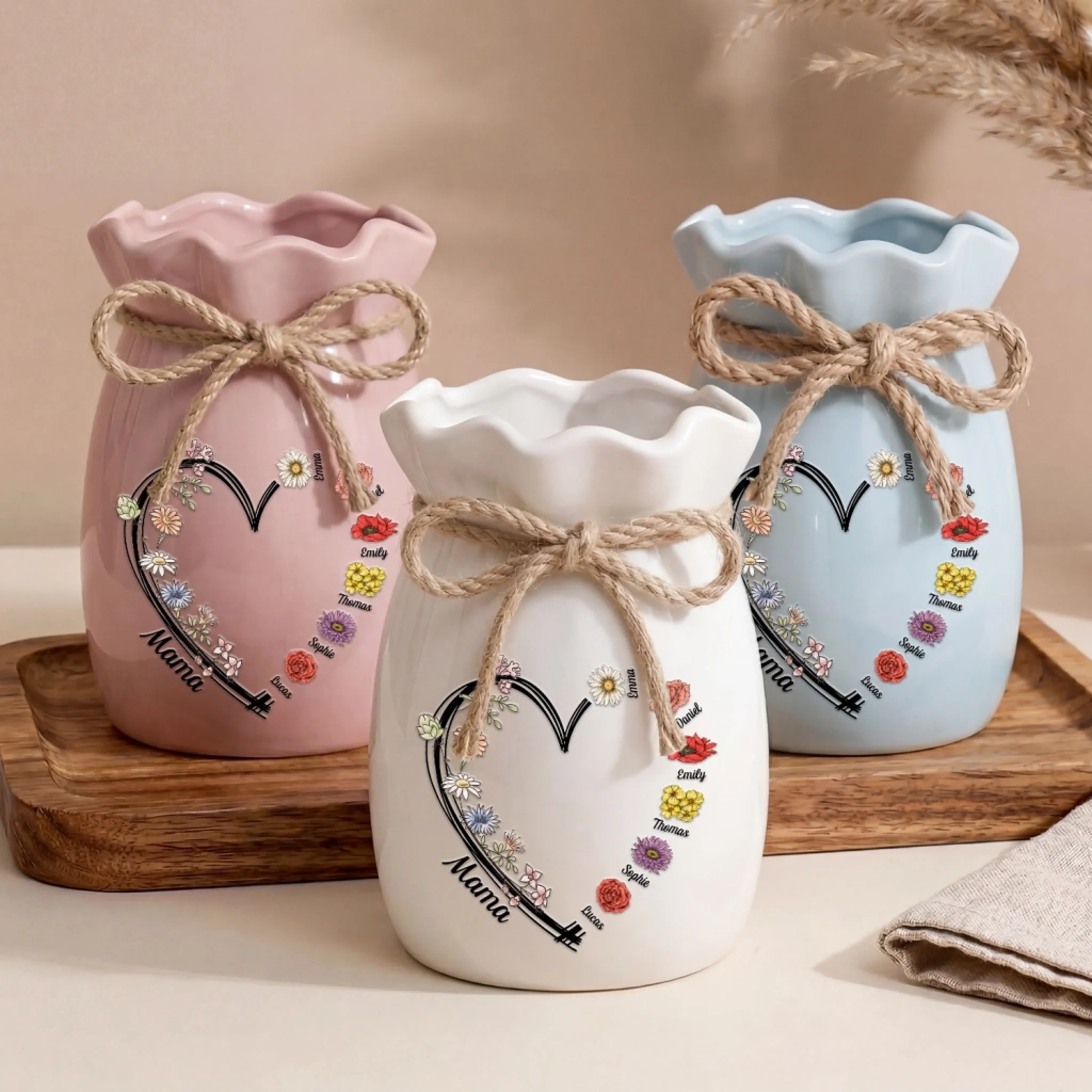 This flower vase with ribbon adds a soft, elegant touch to any space, combining a classic vase shape with a charming decorative bow for a warm and cozy feel. Designed to complement a variety of floral arrangements, it enhances home decor while creating a gentle, inviting atmosphere. Whether placed on a table, shelf, or countertop, it brings a subtle sense of style and beauty to everyday living. This is the perfect gift for anyone, suitable for all occasions: birthdays, holidays, anniversaries, graduations, Valentine's Day, Mother's Day, Father's Day, and just because! Whether for friends, family, or that special someone, this versatile gift is guaranteed to bring joy and make lasting memories.