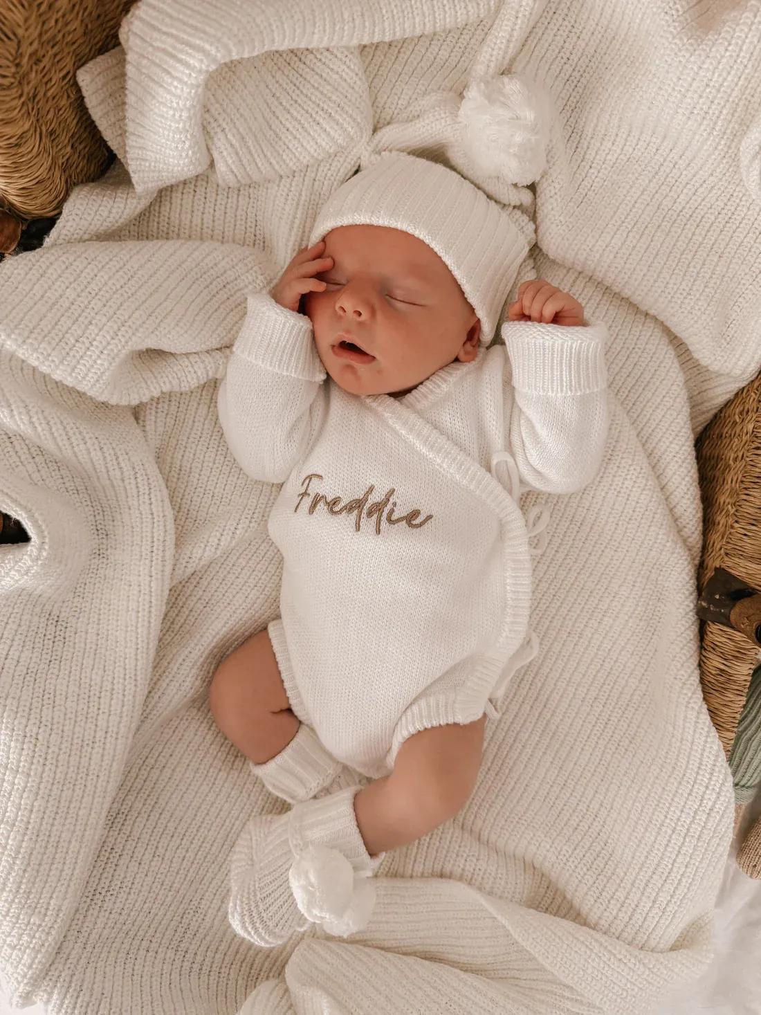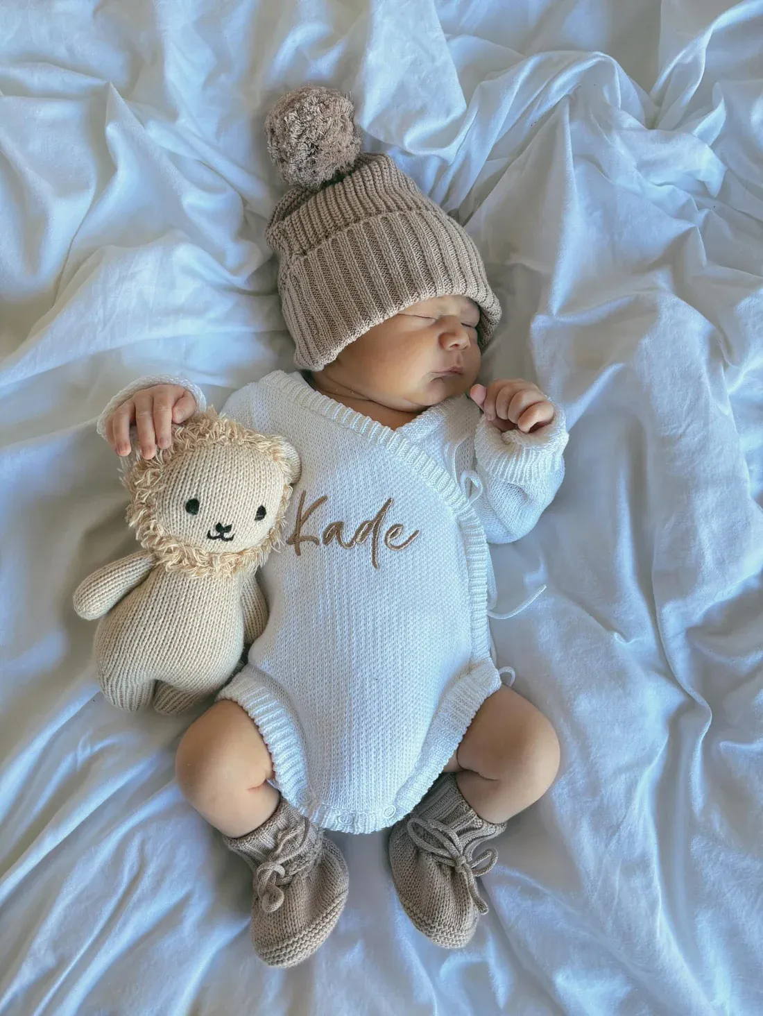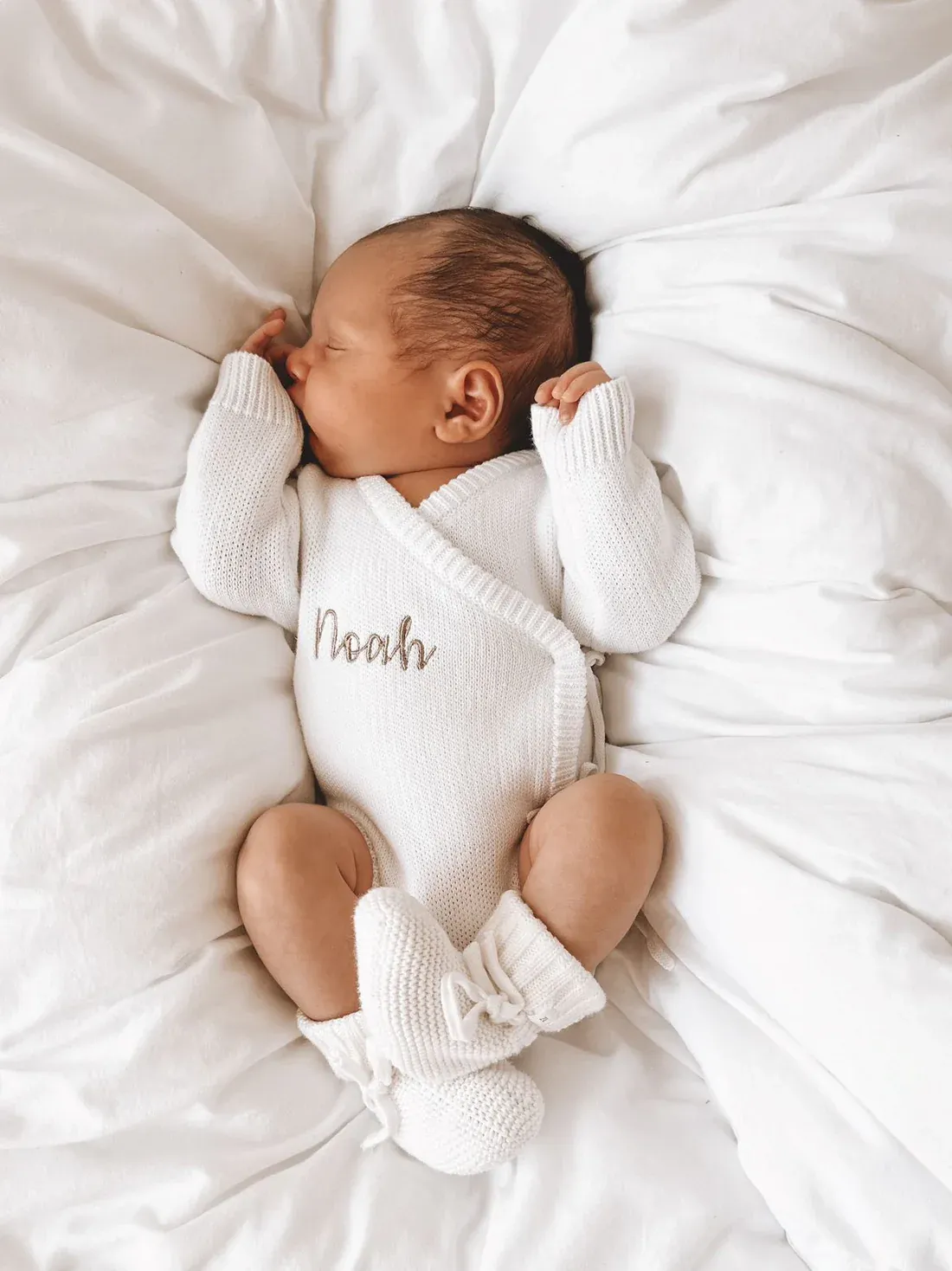 Our knit bodysuits are the perfect piece. This bodysuit is made from the softest 100% cotton. Two ties on the side and snap buttons make nappy changing easy.