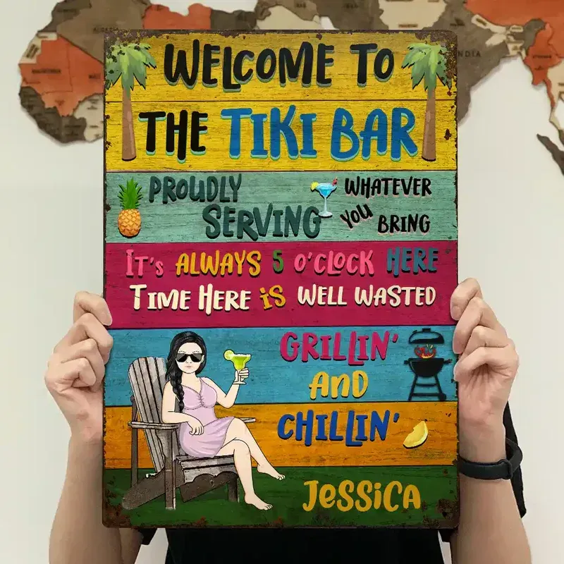 Personalized Classic Metal Sign is a perfect choice for any occasion: Christmas, Birthday, Valentine's Day, Father’s Day, Mother's Day, Anniversary or Graduation. It's also an unique idea to display at the backyard bar, balcony, barn, basement bar, campsite, deck, dock, fire pit, garage, garden, home bar, patio bar, pool bar, poolside, porch, spa, tiki bar, trailer, etc.