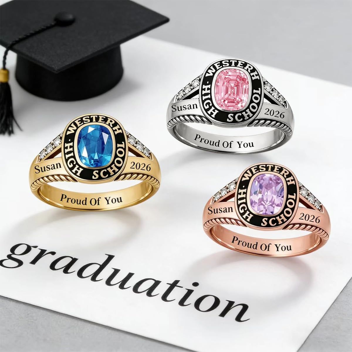 Personalized Graduation Class Birthstone Ring - Graduation Jewelry Gift for Men & Women