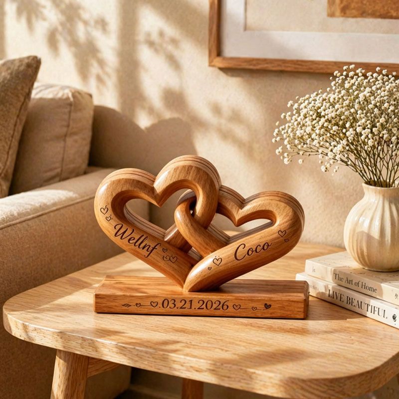 Two hearts, one story. This handmade wooden plaque with interlocking hearts symbolizes the unique bond of two people-perfect as a gift for couples, fiancee, spouse or anniversaries.