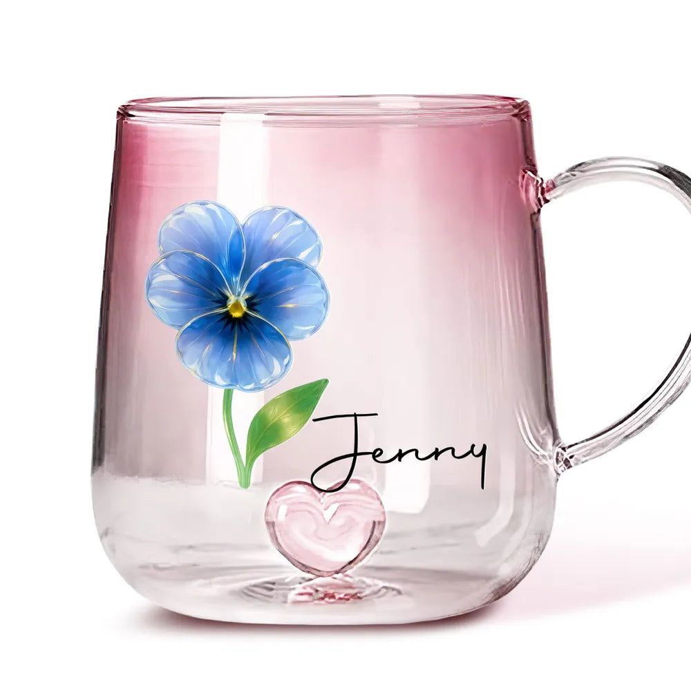 Birth Month Crystal Flower - Personalized Gradient Glass Mug - Gift For Sister, Bestie, Family