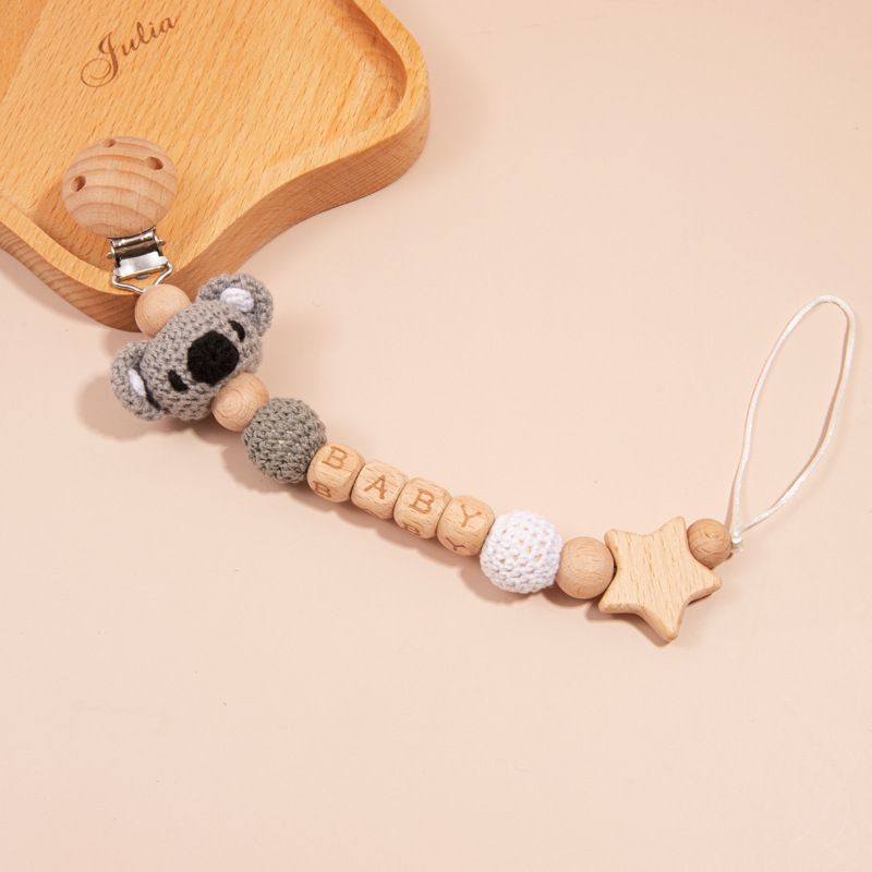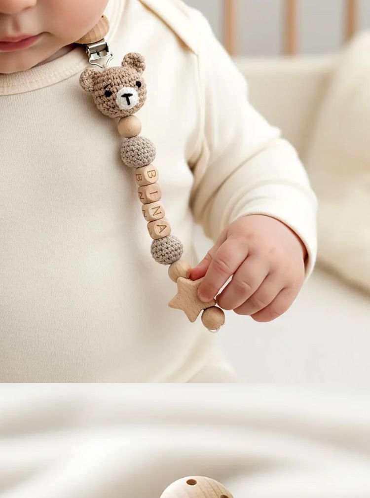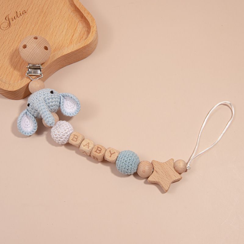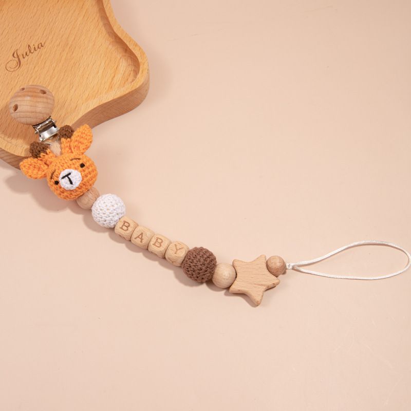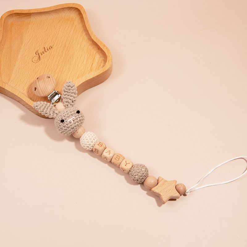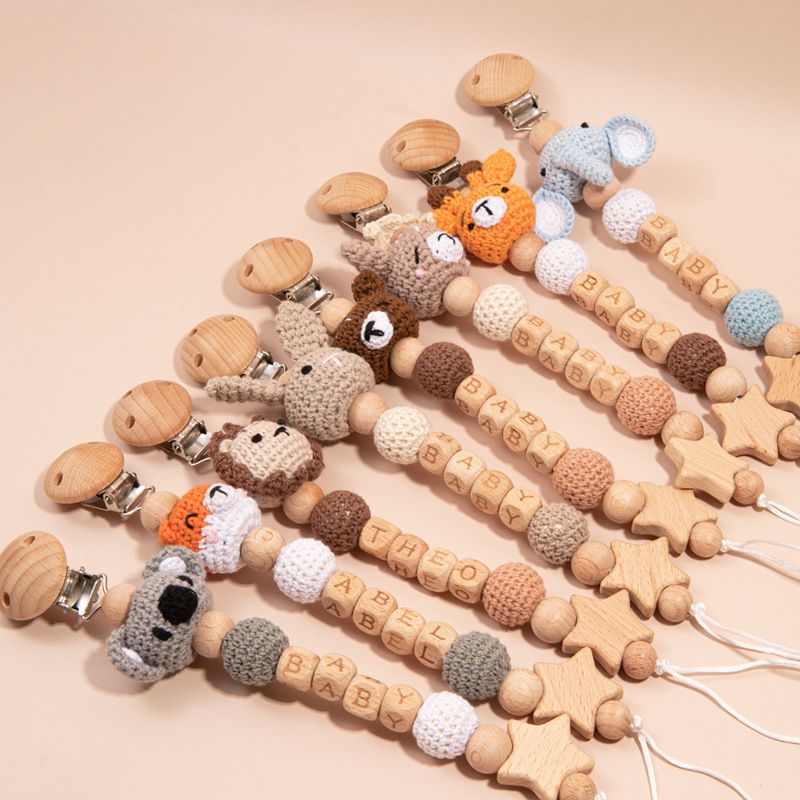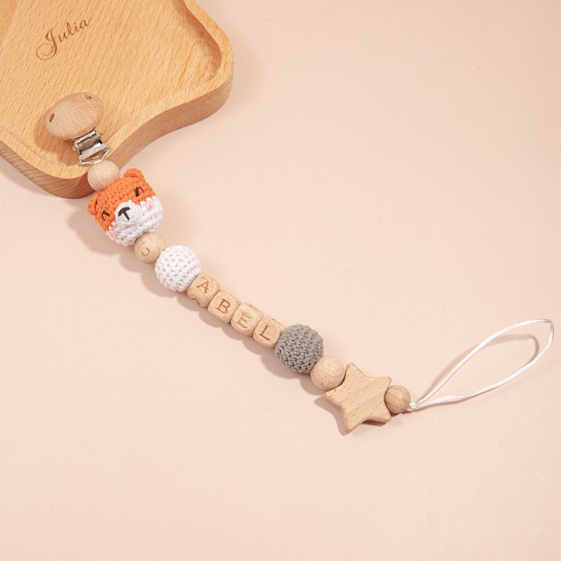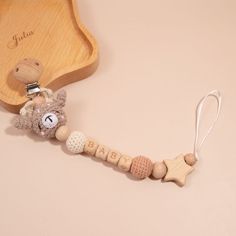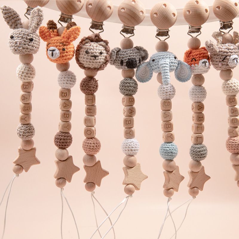 Handmade Crochet Animal Pacifier Clip - Custom Baby Name - Newborn Gift
