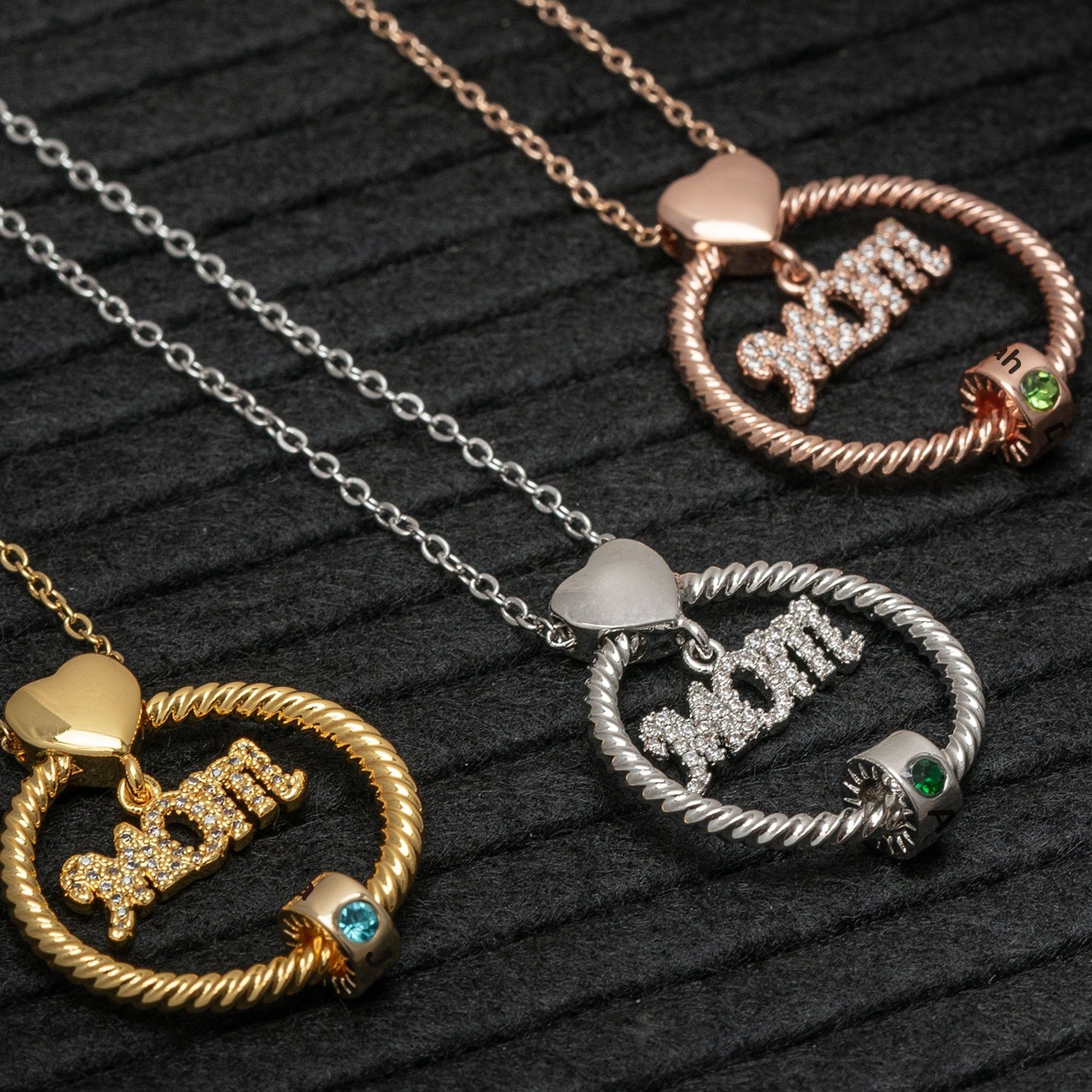 Mother's Day Gift Engraved Names - Personalized Circle Pendant With Birthstone Beads Necklace