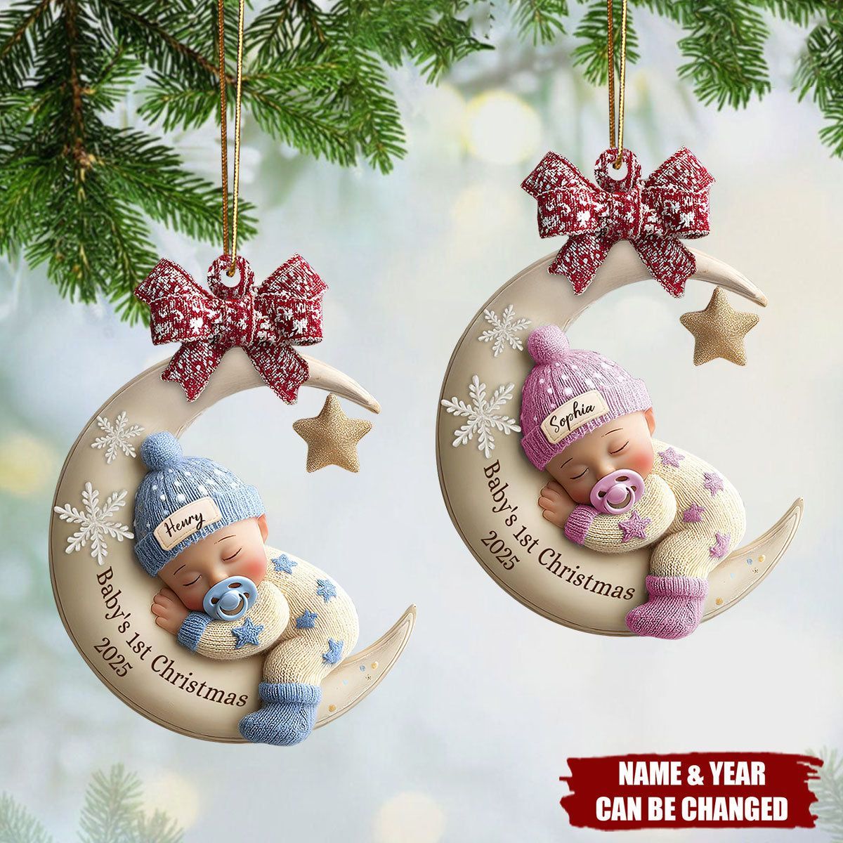 Babys First Christmas Ornament, Custom Moon Acrylic Keepsake
