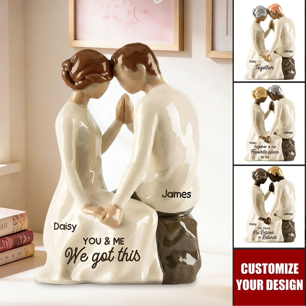 Couple Sitting Side By Side - Personalized Acrylic Block Plaque - Valentine's Day, Anniversary Gift For Him, Gift For Her