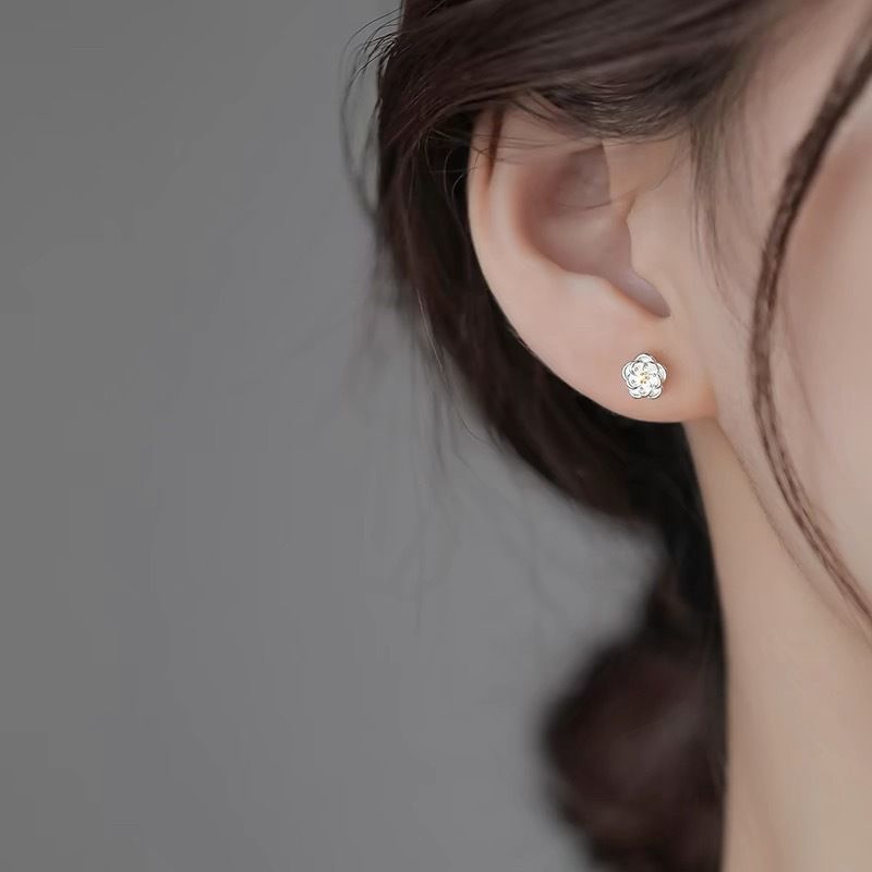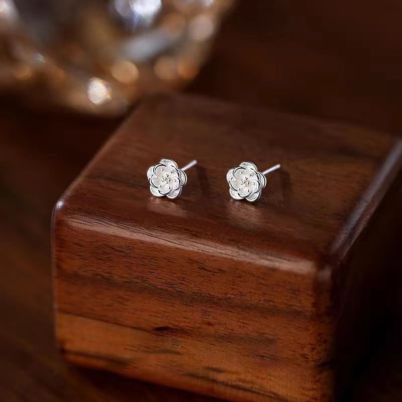 S999 Sterling Silver Earrings With White Camellia-Elegant Blooming, Customizable