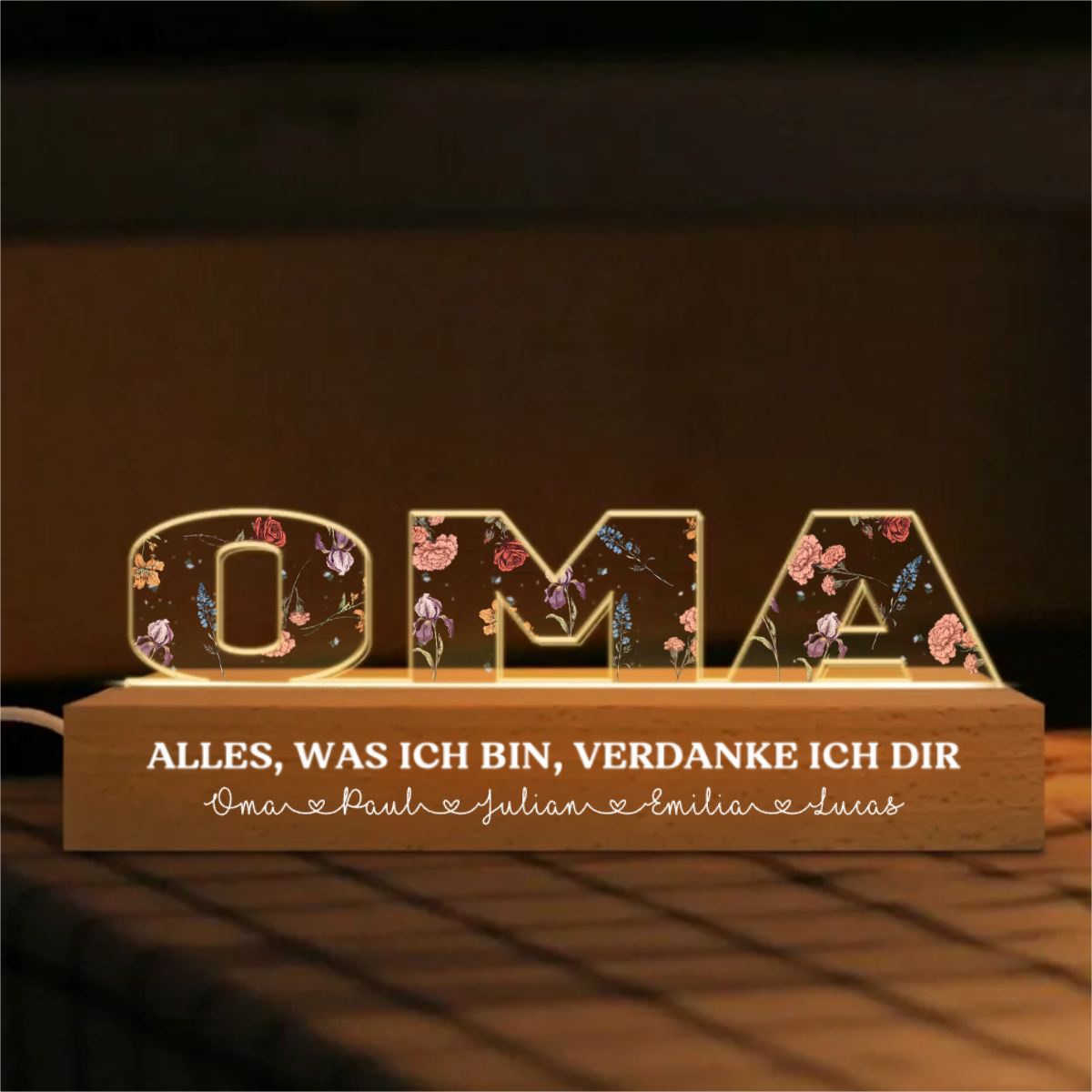Personalisertes MAMA-Nachtlicht mit Geburtsblumen für Mama und Oma