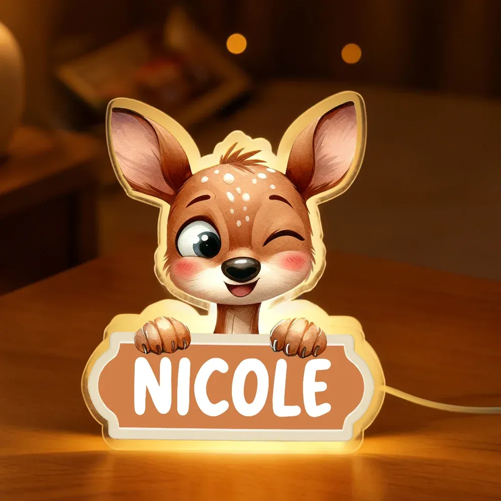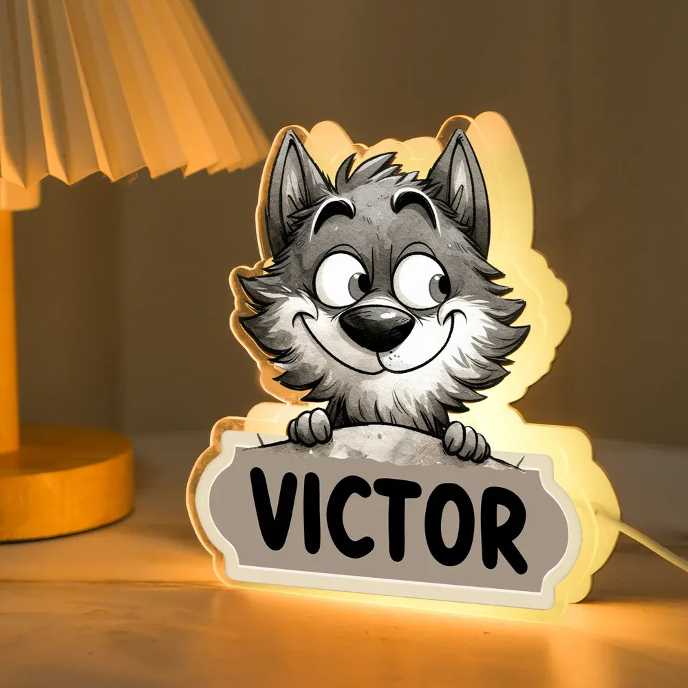 Personalized Cute Cartoon Lion Wolf Animal Acrylic LED Night Light with Name Birthday Gift for Kids