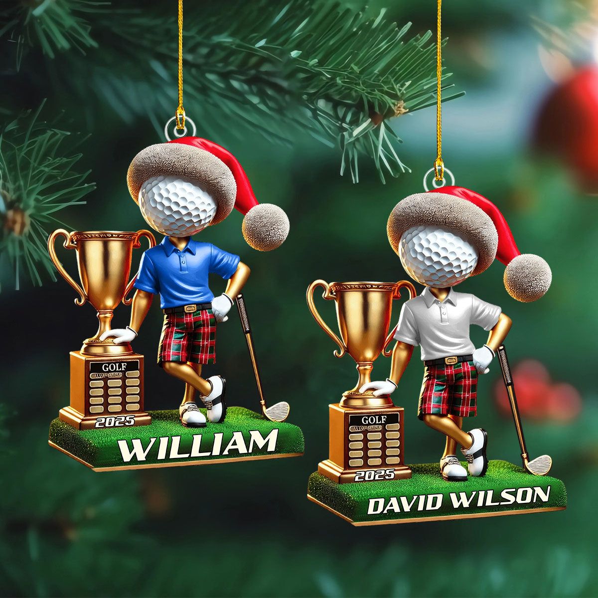 Honor your favorite golfer's achievements with this elegant transparent ornament, customized with their name and championship year. Perfect for commemorating tournament wins, club championships, or personal milestones.