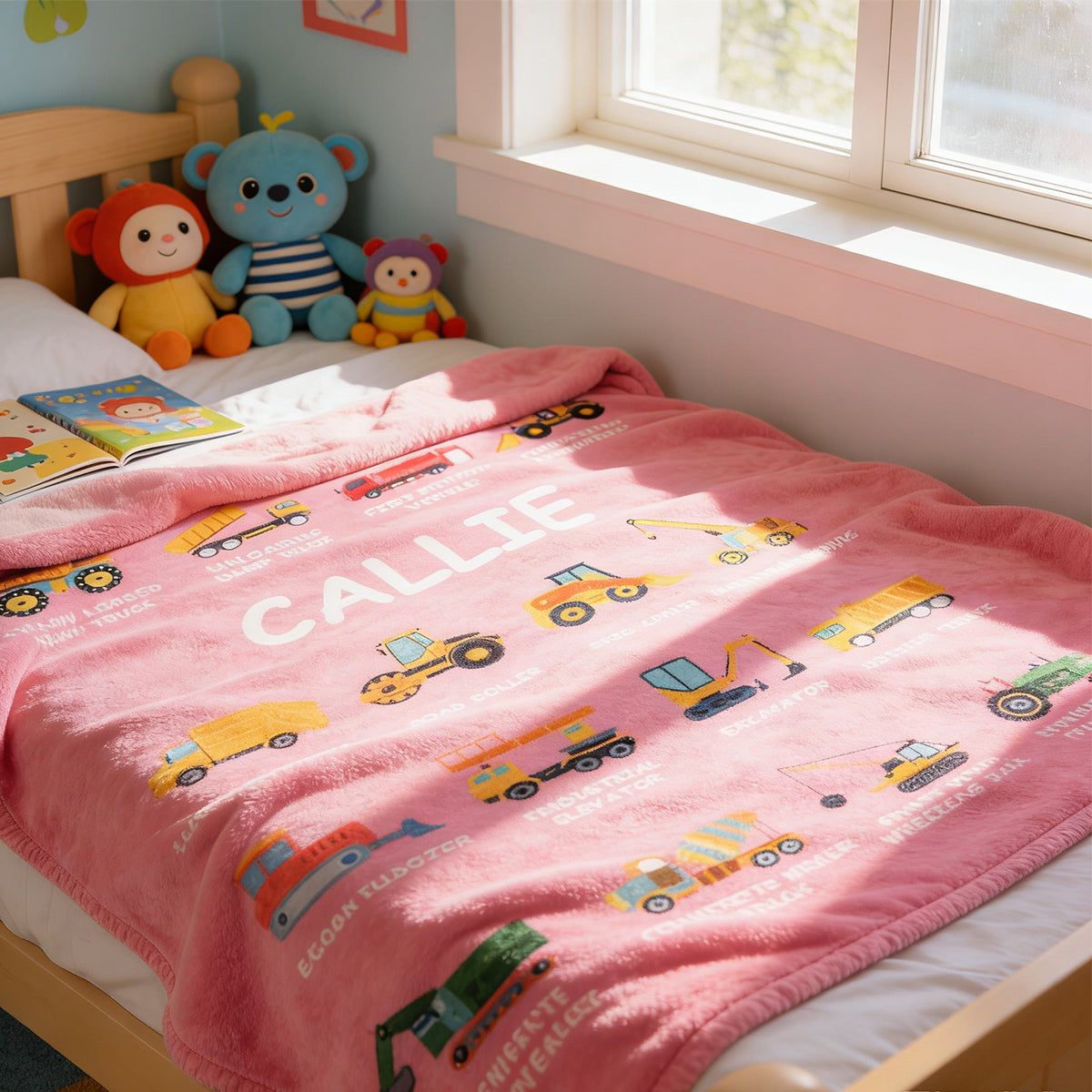 Personalized Construction Truck Blanket - Gift for Kids Truck Lovers